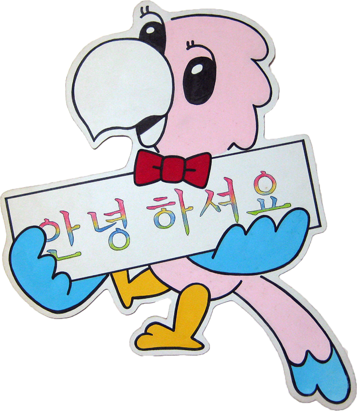 하드보드지에 물감으로 직접그린 앵무새 캐릭터